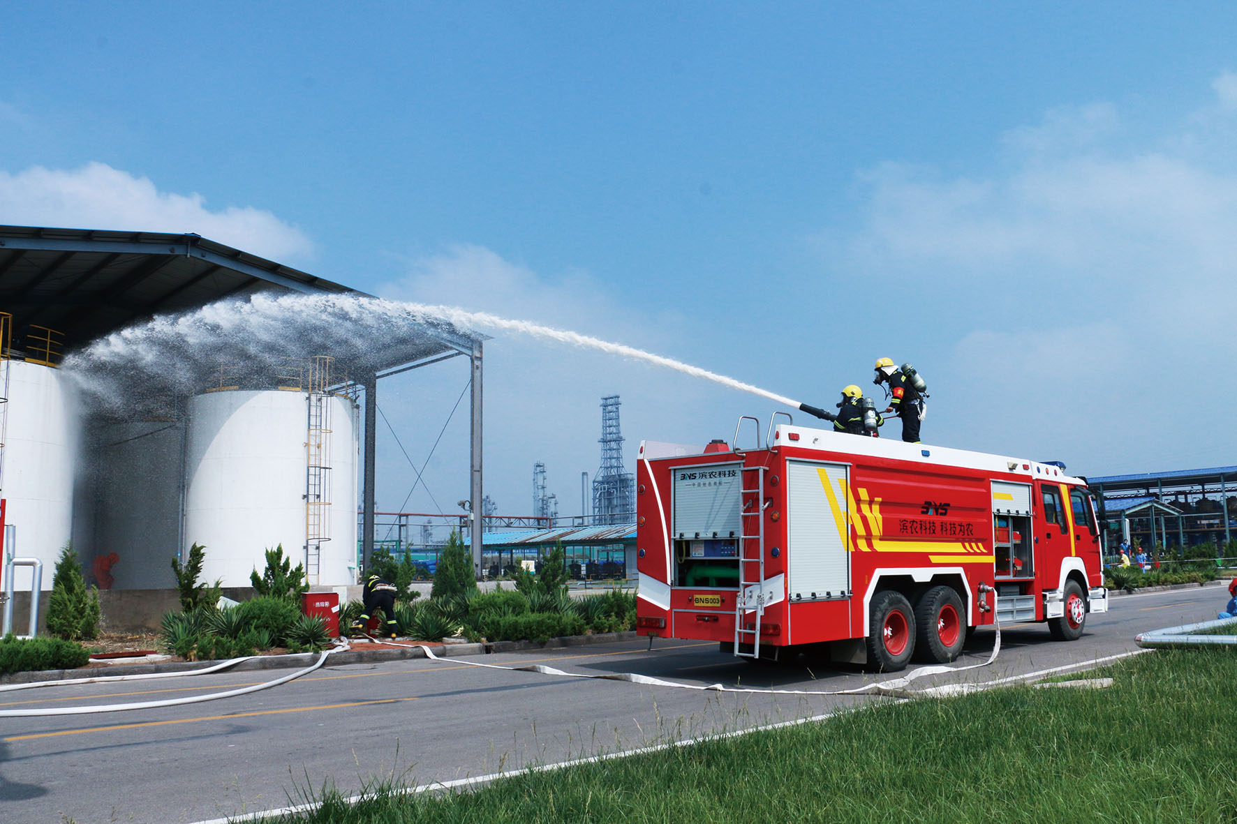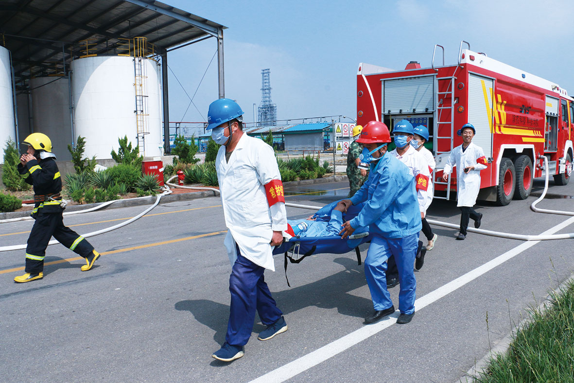 綜合應(yīng)急救援演練:突發(fā)事故處置得當(dāng)發(fā)布時(shí)間:2018-07-07 16:146月15日上午,我公司在原料罐區(qū)進(jìn)行了安全、環(huán)境事故綜合預(yù)案應(yīng)急演練,濱州工業(yè)園區(qū)管委會(huì)副主任張文杰、應(yīng)急救援中心主任司志明、經(jīng)發(fā)局副局長李俊善,我公司總經(jīng)理張茂貴,副總經(jīng)理侯立國、郭安勇,總工徐家俊、總經(jīng)理助理張樂樂、副總經(jīng)理助理趙福廷及部分車間中層、員工近150人參加了此次演練。 我公司安全總監(jiān)王艷彬擔(dān)任現(xiàn)場總指揮,強(qiáng)調(diào)了綜合演練的重要性,要求各車間要切實(shí)提高員工自身應(yīng)急逃生能力和對車間突發(fā)事故的應(yīng)急處置能力。此次綜合應(yīng)急演練主要包括MEA泄漏火災(zāi)初期應(yīng)急處置、車間應(yīng)急預(yù)案響應(yīng)、火災(zāi)事故失控應(yīng)急預(yù)案升級啟動(dòng)響應(yīng)、專職消防隊(duì)現(xiàn)場救援、現(xiàn)場及附近人員撤離、中毒受傷人員救治、現(xiàn)場環(huán)境污染應(yīng)急及監(jiān)測、現(xiàn)場洗消處置及搶險(xiǎn)搶修堵漏等環(huán)節(jié),演練過程中各應(yīng)急小組動(dòng)作迅速、處置措施正確。演練結(jié)束后,張總給予肯定并要求在今后的安全管理上我們要不定時(shí)、不設(shè)場景、不設(shè)預(yù)案,經(jīng)常性的搞突襲式演練,通過實(shí)戰(zhàn)化演練來提高全體人員面對突發(fā)事件的應(yīng)急處置能力,以最大限度減少人員傷亡和財(cái)產(chǎn)損失;同時(shí),對演練過程中出現(xiàn)的問題,要及時(shí)總結(jié)經(jīng)驗(yàn)教訓(xùn),及時(shí)修改預(yù)案,對預(yù)案的可行性和可操作性作出實(shí)事求是的評估。 本次應(yīng)急預(yù)案演練險(xiǎn)情真實(shí),處置措施得當(dāng),從火情發(fā)生到疏散解救、撲滅火災(zāi)、及時(shí)、有效,保障了人身安全,避免了財(cái)產(chǎn)損失;真正做到了分工明確,職責(zé)到人,在火情發(fā)生的第一時(shí)刻,疏散搶救不慌亂,后勤保障準(zhǔn)確到位,搶險(xiǎn)救災(zāi)及時(shí)、安全。