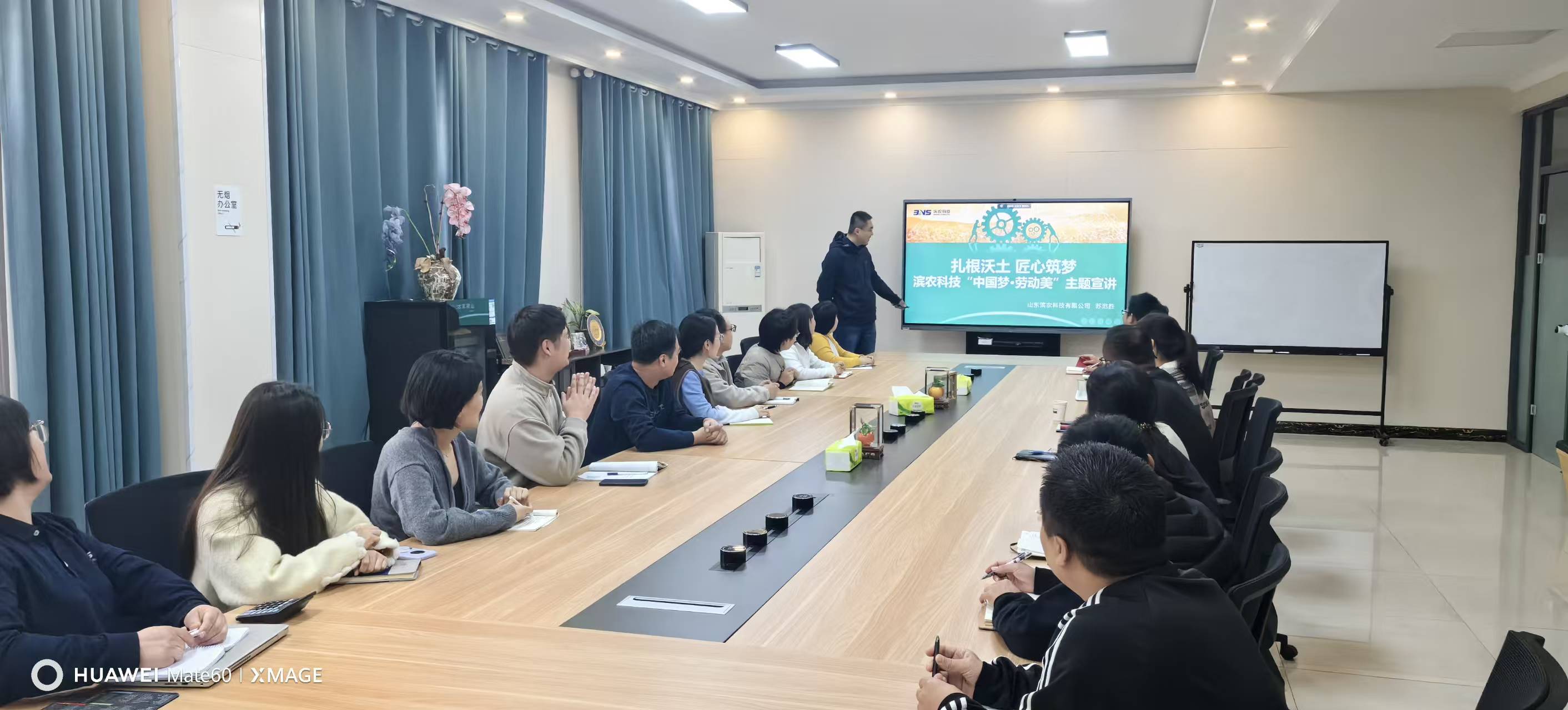 10月30日,濱農科技“扎根沃土·匠心筑夢-濱農科技中國夢·勞動美”主題宣講在國際事業(yè)部舉行,勞模工匠代表蘇范勝擔任主講人,多名職工現(xiàn)場聆聽。