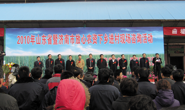 2010年3月23日上午,2010年“山東省暨濟南市放心農(nóng)資下鄉(xiāng)咨詢活動”在濟陽曲提鎮(zhèn)菜市場舉行。本次活動由山東省農(nóng)業(yè)廳、濟南市政府和濟陽市政府聯(lián)合舉辦。會場選在鎮(zhèn)政府菜市場當中,人流如織,賣菜的農(nóng)民順便參與到活動之中。濱農(nóng)是山東農(nóng)藥企業(yè)唯一的代表,公司帶去了適合當?shù)厥褂玫某輨⑾x殺菌劑產(chǎn)品和宣傳材料;顒又袕V大農(nóng)民對我們的產(chǎn)品十分感興趣,我們詳細解答了農(nóng)民朋友在使用中遇到的諸多實際問題。本次活動是去年我們所參加的省政府兩次活動的繼續(xù),對提升濱農(nóng)品牌的知名度十分有意義。