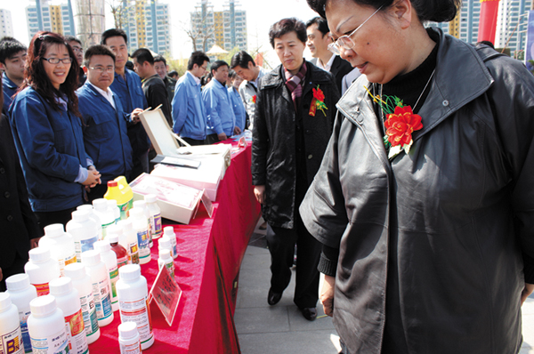4月26日上午,第十個世界知識產(chǎn)權(quán)日大型宣傳咨詢活動在濱州市市政文化廣場隆重舉行,同時我省首個省級知識產(chǎn)權(quán)維權(quán)援助中心——山東(濱州)知識產(chǎn)權(quán)維權(quán)援助中心和山東省知識產(chǎn)權(quán)信息平臺濱州市分平臺揭牌。本次宣傳咨詢活動的主題是“創(chuàng)造·保護·發(fā)展”,我公司研究所派相關(guān)代表參加了此次活動,對公司的專利產(chǎn)品豆虎(25%苯·虎·精喹)以及濱農(nóng)二人轉(zhuǎn)、玉無草等30余種暢銷產(chǎn)品進行了宣傳展示,引起與會人員的極大關(guān)注,省知識產(chǎn)權(quán)局局長李愛民、副局長劉鴻鋒、市委常委副市長孫承志專程到我公司展臺前駐足觀摩交流。