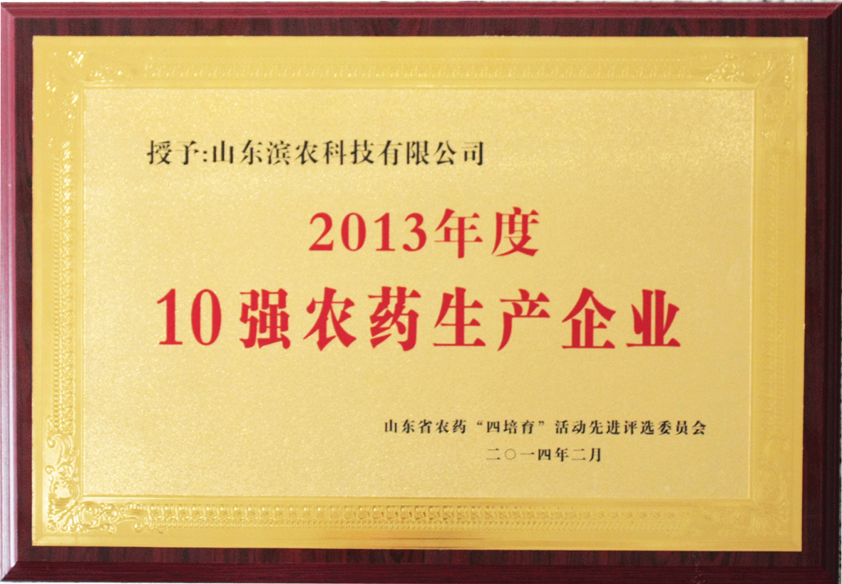 3月13日,山東省農藥管理工作年會在濟南召開,公司董事長黃延昌應邀參會。會議公布了山東省農業(yè)廳組織的“四培育”活動先進單位評選結果:濱農科技獲得十強農藥生產企業(yè)第一名。這是我公司繼2010年、2012年獲得第一名之后再次榮獲第一名。這一榮譽的取得,不僅證明了我公司在山東農藥行業(yè)所具有的地位和實力,證明了公司產品在廣大用戶心中的美譽度,同時也將鼓勵我公司繼續(xù)腳踏實地,以更加優(yōu)秀的產品、更加優(yōu)異的服務來回報社會。