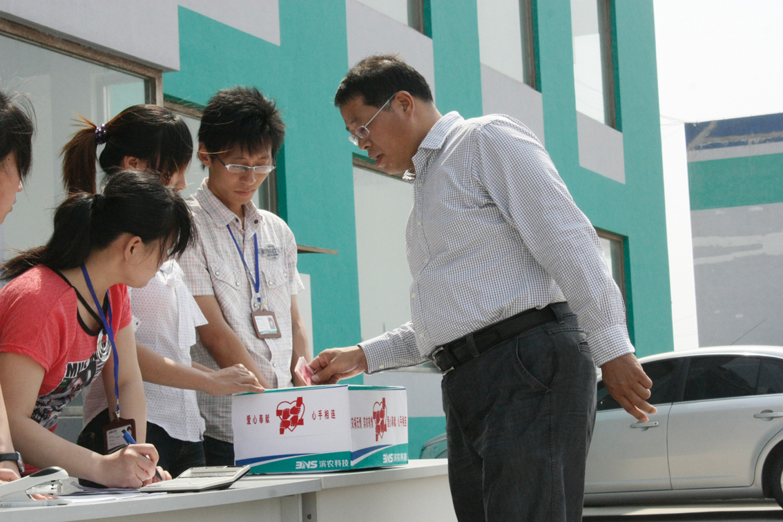 據了解,張冠誠今年47歲,家住濱州堡集,是我公司敬崗愛業(yè)的老員工。其家庭情況非常困難:父親常年有病,靠藥物維持治療;在2010年的一場車禍中,兒子骨折,兒媳去世,巨大的醫(yī)療開支難以為繼;禍不單行,張冠誠又確診身患急性白血病,給這個貧困的家庭雪上加霜。公司獲知這個情況后,立即行動起來,6月4日下午,黨總支、工會、企業(yè)文化部、人力資源部聯(lián)合組織了“我們在一起,愛心拯救生命”的集體募捐活動。全體中高層干部齊聚辦公樓前參加募捐活動,公司董事長黃延昌、工會主席李華率先捐款,科室員工也紛紛走到捐款箱前,獻出一份愛心。各分廠車間也陸續(xù)將車間員工捐助的愛心款匯集到人力資源部;顒咏Y束后,共1150名同事累計捐款48693元。同時公司工會也拿出10000元專項救助款,用于馳援張冠誠抗擊病魔。